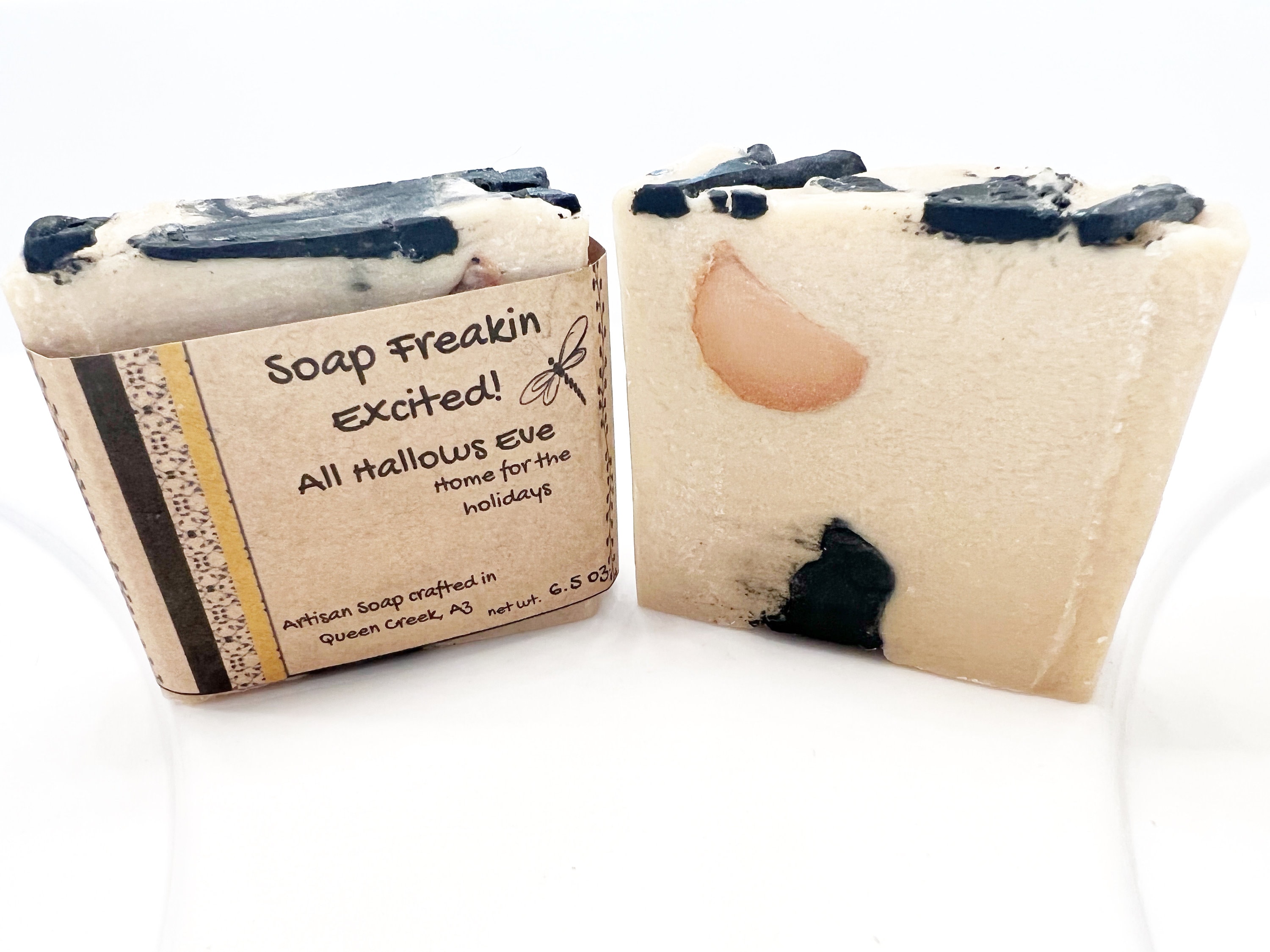All Hallows Eve!- All Hallows Eve will be creeping in on us soon, and the black cats will be on the prowl. This fun seasonal soap is scented with the classic Home For The Holidays scent, that just screams Halloween! As with all our soaps, this bar is made with 100% plant based oils and butters for a soft clean finish.