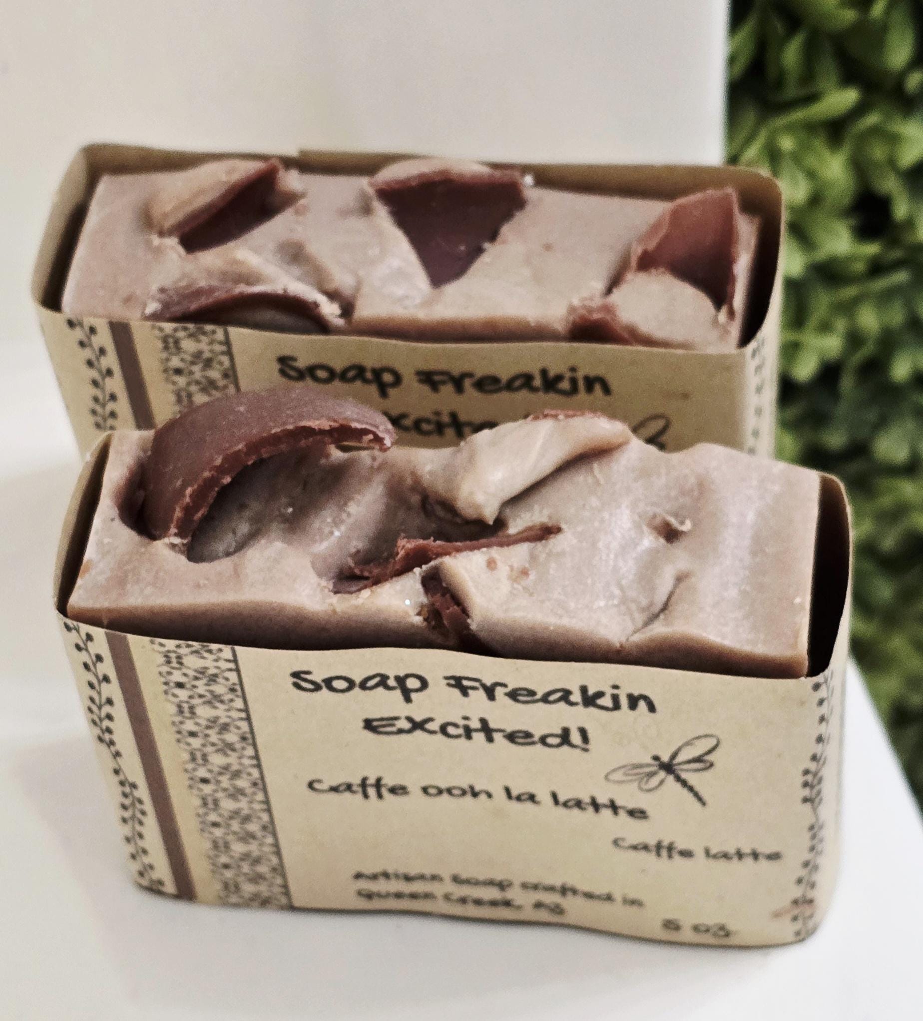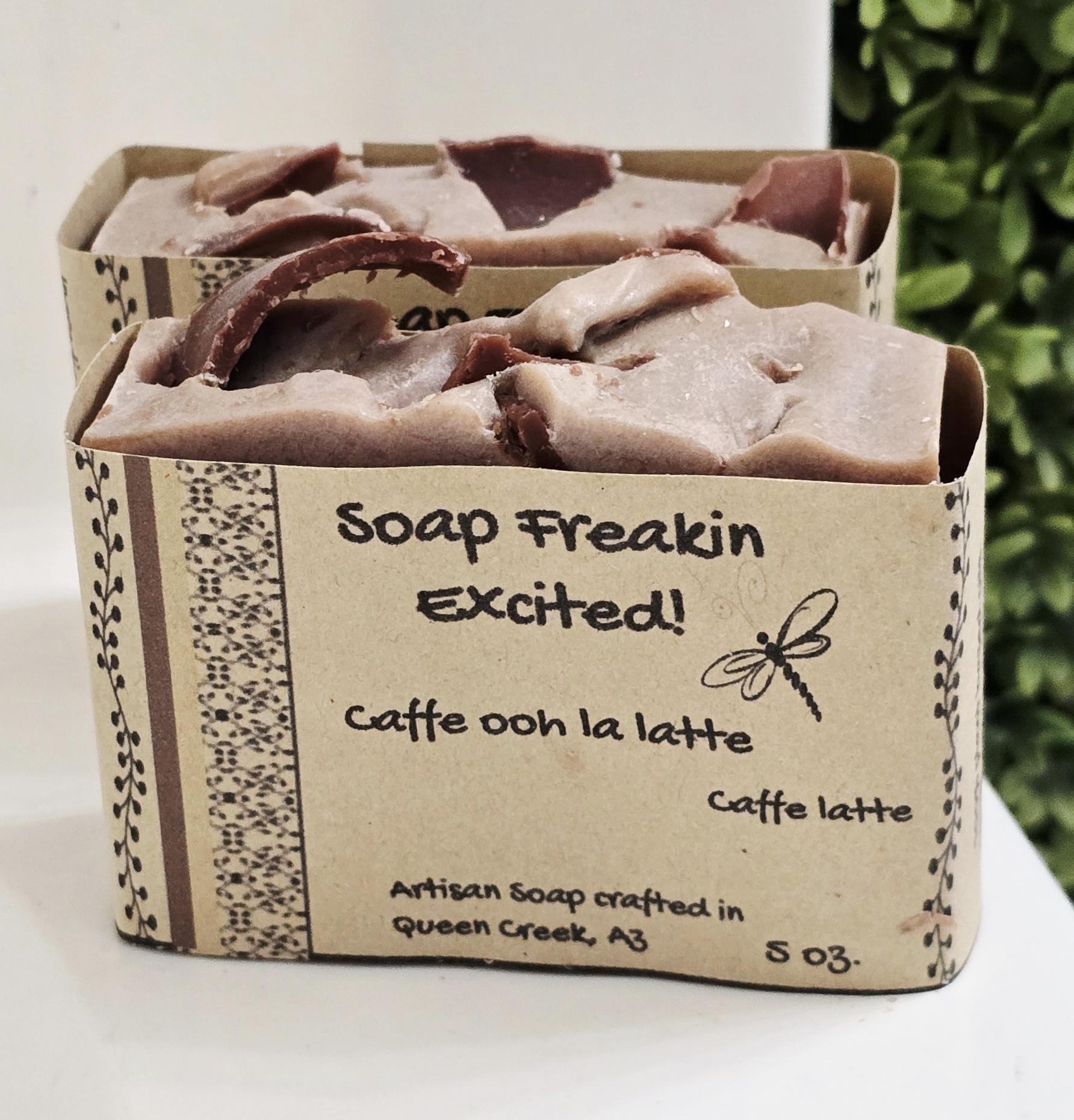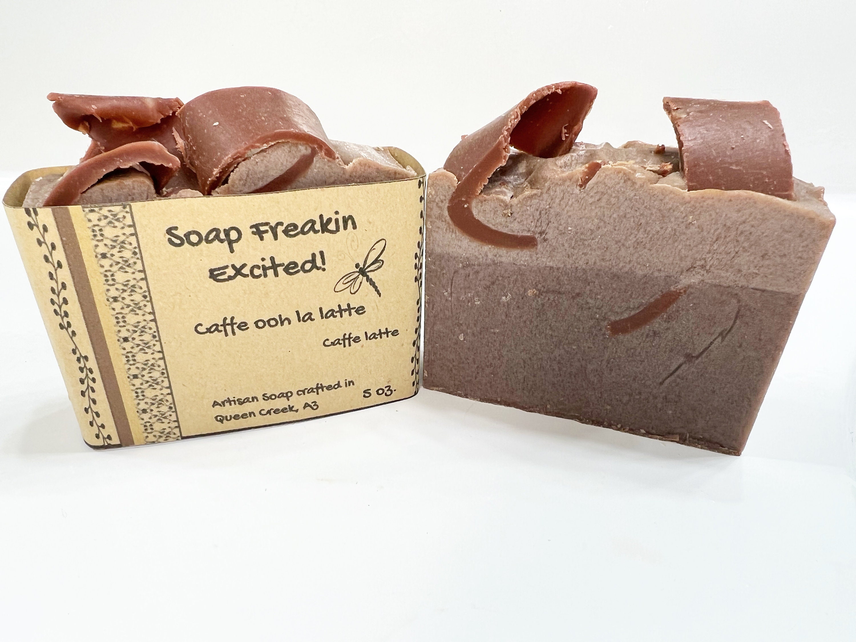 ooh la latte! This beautifully made bar has you craving the coffee! Scented to smell like a latte, our caffe ooh la latte has the aroma to get your day started. A beautiful balance of sweet vanilla coffee and silky cream, makes this soap delicious. Loaded with 100% plant-based oils + butters, moisturizes and leaves your skin smooth soft and clean. It's a wonderful way to start your day, ooh la latte!