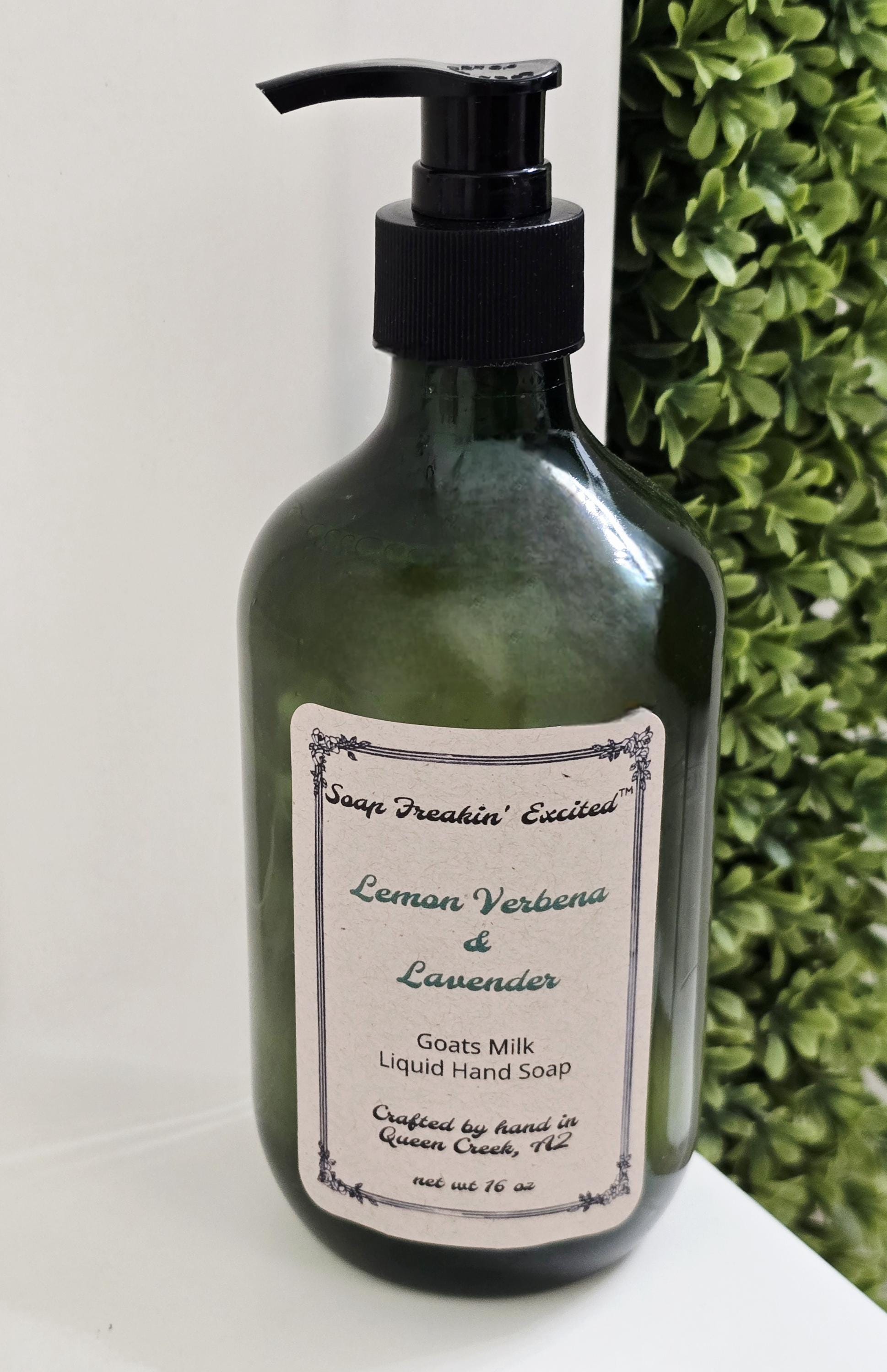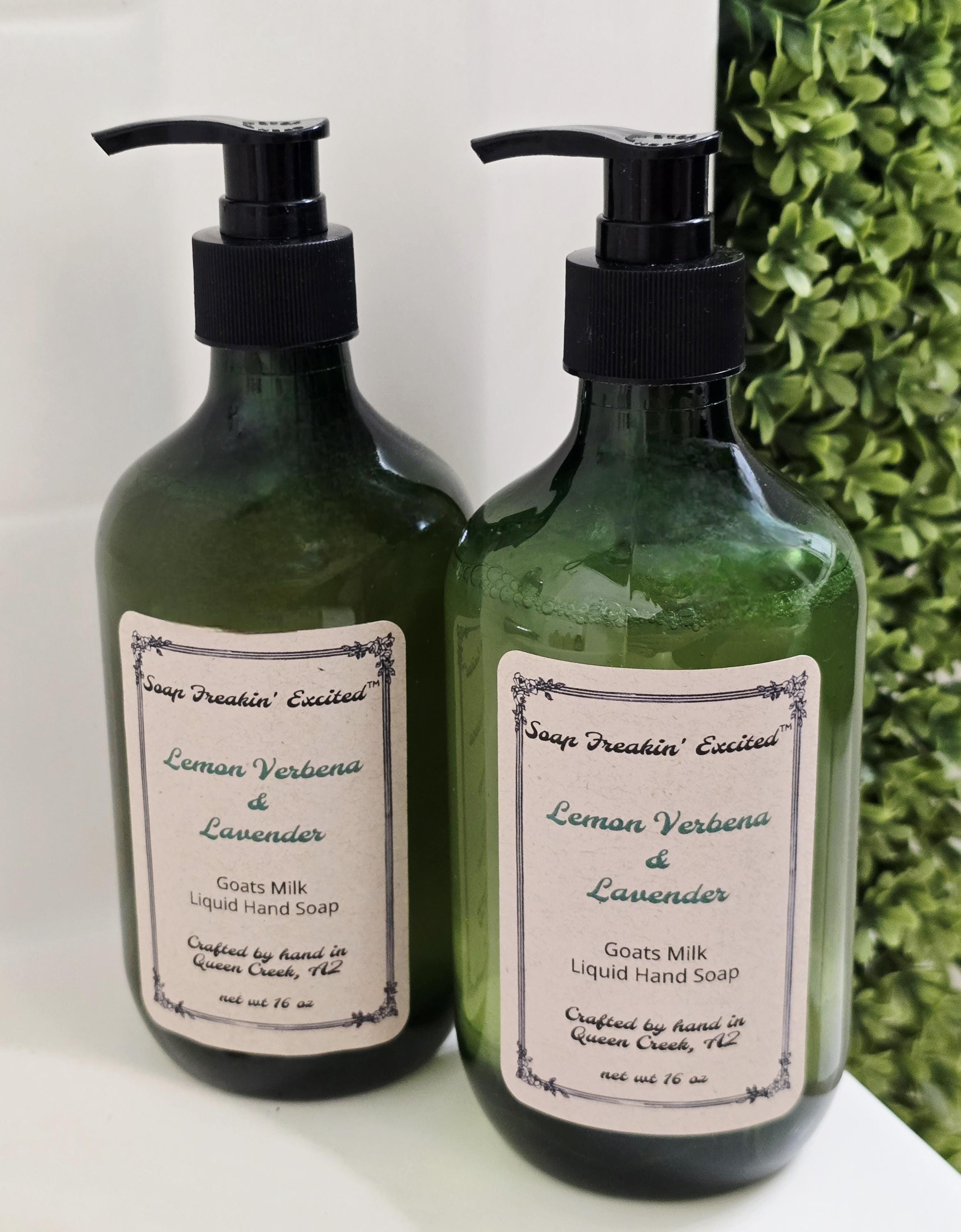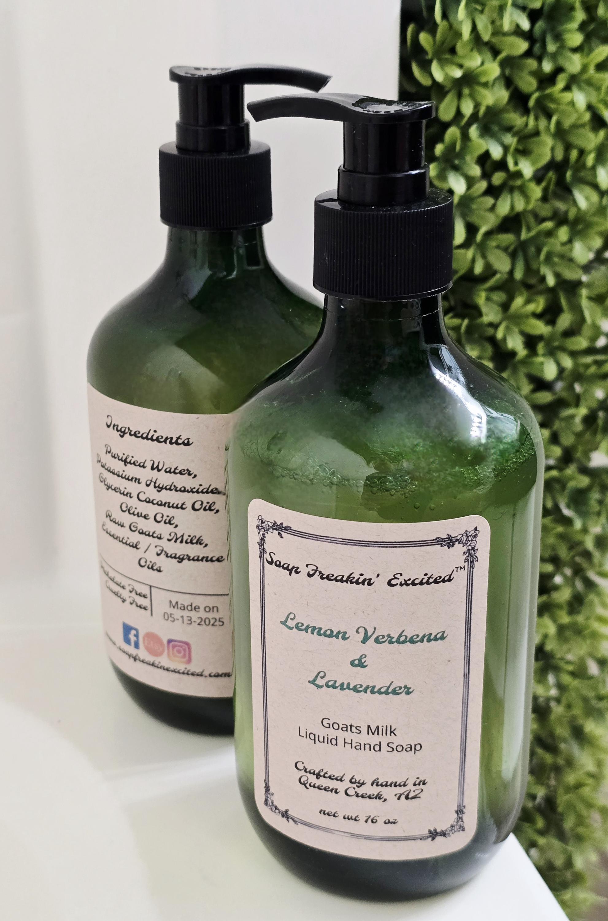 This liquid hand soap is the perfect soap for any sink! Scented with the freshness of Lemon Verbena and Lavender plus the added goats milk, not only leaves your hands smelling clean and fresh, but smooth and silky! Prefer liquid soap over a bar soap? If so, then enjoy our new Lemon Verbena and Lavender liquid hand soap!